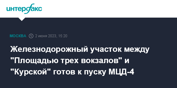 Железнодорожный участок между "Площадью трех вокзалов" и "Курской" готов к пуску МЦД-4