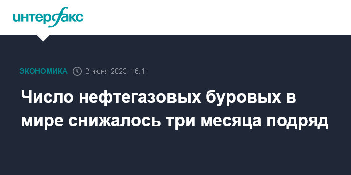 Москва. 2 июня. INTERFAX.RU - В мае 2023 года число действующих нефтяных и газовых буровых установок в мире сократилось по итогам третьего месяца подряд, сообщила американская нефтесервисная компания Baker Hughes.