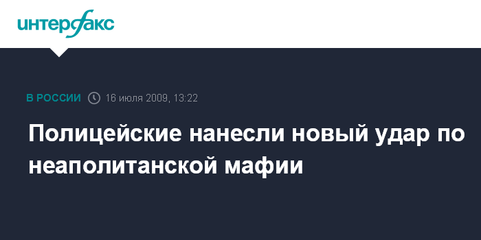 Рим. 16 июля. INTERFAX.RU - Итальянские полицейские в четверг провели новую операцию против неаполитанской мафии - "Каморры".
