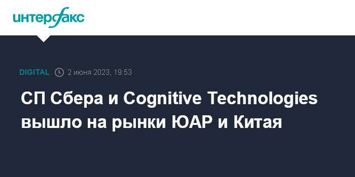 СП Сбера и Cognitive Technologies вышло на рынки ЮАР и Китая