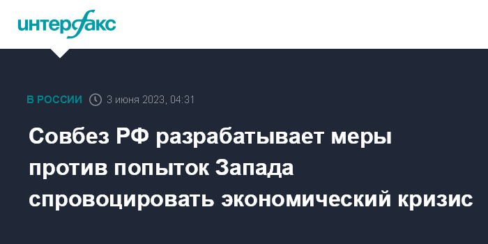 Москва. 3 июня. INTERFAX.RU - В Совбезе России сообщили в субботу, что разрабатывают меры для недопущения экономического кризиса, который пытаются спровоцировать западные страны.