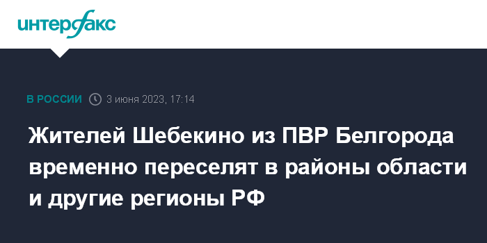 Москва. 3 июня. INTERFAX.RU - Мэр Белгорода Валентин Демидов сообщил в субботу о временном расселении в районы области и другие российские регионы жителей Шебекино, размещенных ранее в трех пунктах временного размещения (ПВР), организованных в городе.