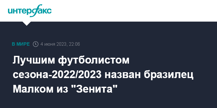 Лучшим футболистом сезона-2022/2023 назван бразилец Малком из "Зенита"
