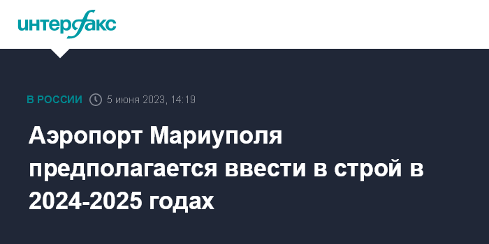 Москва. 5 июня. INTERFAX.RU - Аэропорт Мариуполя может начать функционировать в 2024-2025 годах, аэропорты Донецка, Луганска, Херсона и Запорожья будут задействованы чуть позже из-за разрушений, сообщил глава Минтранса Виталий Савельев на встрече с президентом РФ Владимиром Путиным.