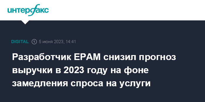 Москва. 5 июня. INTERFAX.RU - Разработчик программного обеспечения EPAM Systems Inc. снизил прогноз выручки по результатам 2023 года до $4,65-4,8 млрд с прежнего прогноза в $4,95-5 млрд, сообщила компания.