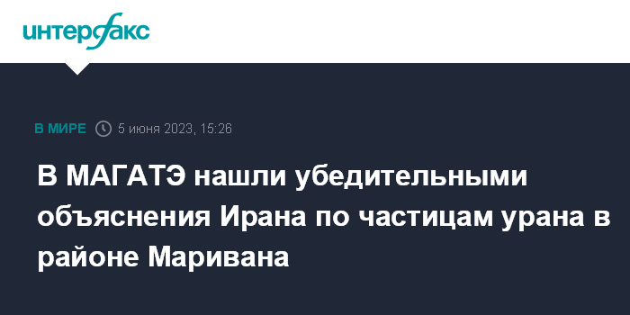 Москва. 5 июня. INTERFAX.RU - В МАГАТЭ не могут перепроверить объяснения Ирана о причинах появления частиц искусственного урана, найденных на объекте в районе Маривана, но считают заявления Тегерана правдоподобными, заявил на пресс-конференции в Вене гендиректор агентства Рафаэль Гросси.