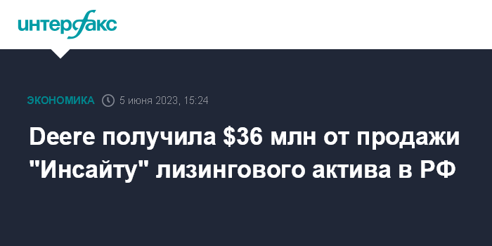 Deere получила $36 млн от продажи "Инсайту" лизингового актива в РФ