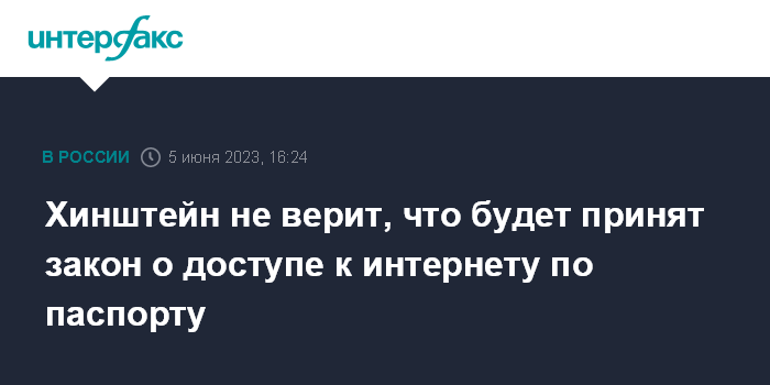 Хинштейн не верит, что будет принят закон о доступе к интернету по паспорту