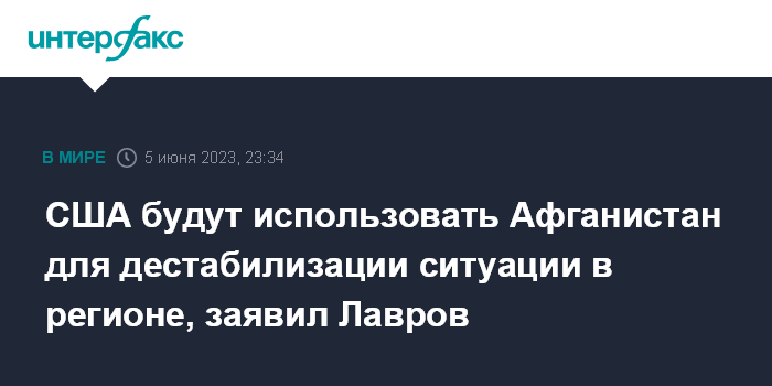 Москва. 5 июня. INTERFAX.RU - Соединенные Штаты работают над тем, чтобы не допустить стабилизации ситуации в Афганистане, в том числе для того, чтобы использовать Центральную Азию как фронт в противостоянии с Россией, заявил глава МИД РФ Сергей Лавров.