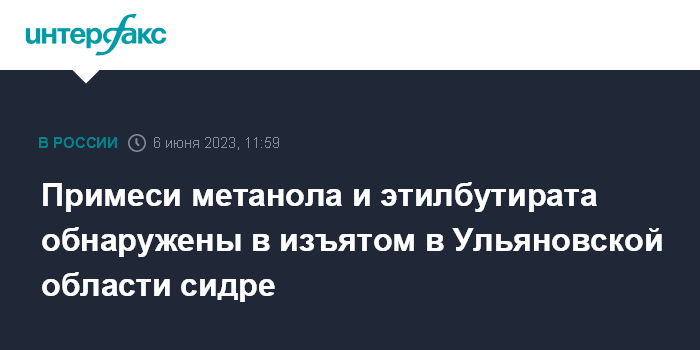 Примеси метанола и этилбутирата обнаружены в изъятом в Ульяновской области сидре