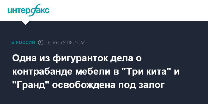 Одна из фигуранток дела о контрабанде мебели в "Три кита" и "Гранд" освобождена под залог