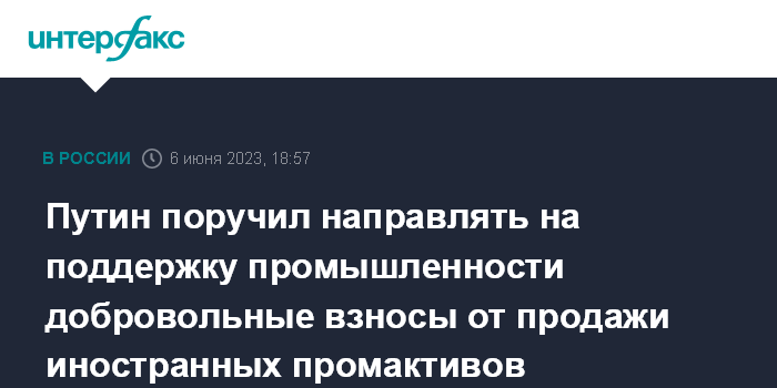 Путин поручил направлять на поддержку промышленности добровольные взносы от продажи иностранных промактивов