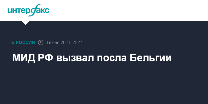 Москва. 6 июня. INTERFAX.RU - В МИД России во вторник был вызван посол Бельгии в Москве Марк Михильсен, сообщили в российском внешнеполитическом ведомстве.
