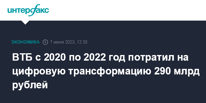 ВТБ с 2020 по 2022 год потратил на цифровую трансформацию 290 млрд рублей