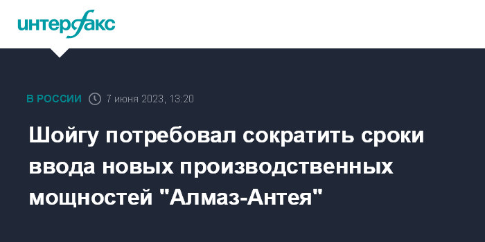 "Генеральный директор предприятия доложил министру обороны РФ о реализуемых программах расширения производственных мощностей для обеспечения российских войск современными комплексами противовоздушной обороны. По его словам, "создание новых производственных мощностей позволит в два раза поднять возможности предприятия", - говорится в сообщении.
