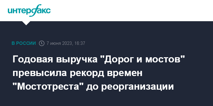 Годовая выручка "Дорог и мостов" превысила рекорд времен "Мостотреста" до реорганизации