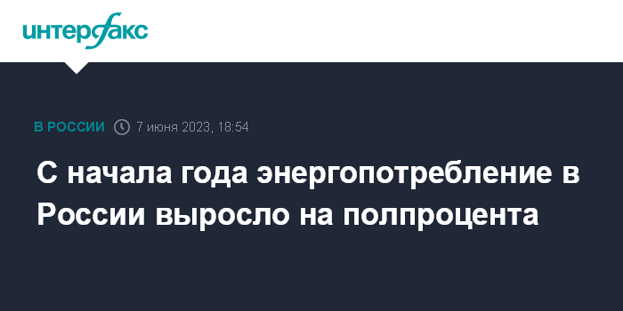 С начала года энергопотребление в России выросло на полпроцента