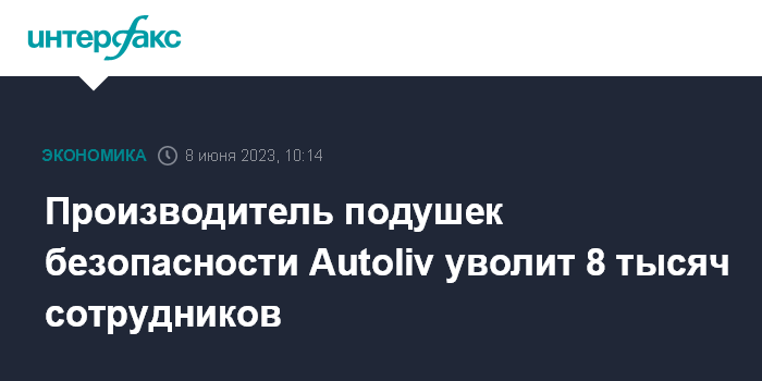 Москва. 8 июня. INTERFAX.RU - Шведско-американский производитель систем безопасности для транспортных средств Autoliv планирует сократить глобальный штат на 8 тысяч ради сокращения расходов.