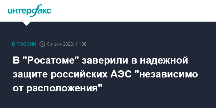 В "Росатоме" заверили в надежной защите российских АЭС "независимо от расположения"