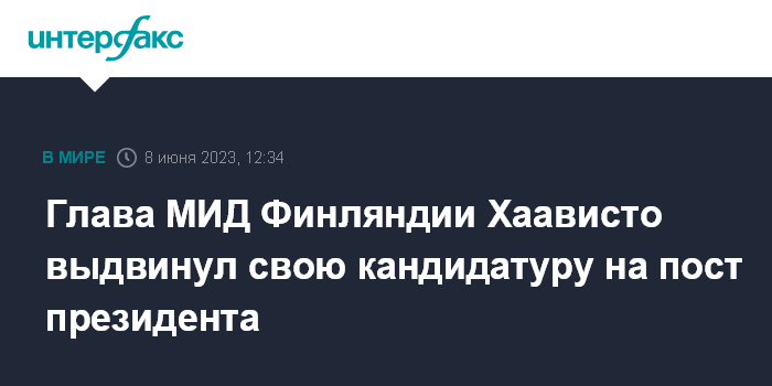 Глава МИД Финляндии Хаависто выдвинул свою кандидатуру на пост президента