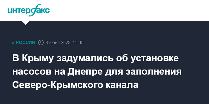 Москва. 8 июня. INTERFAX.RU - В Крыму изучают альтернативные варианты наполнения Северо-Крымского канала (СКК) водой из Днепра после разрушения Каховской ГЭС, сообщил журналистам глава Крыма Сергей Аксенов.