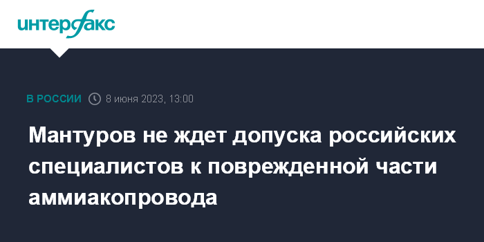 Мантуров не ждет допуска российских специалистов к поврежденной части аммиакопровода