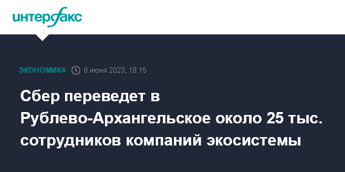 Сбер переведет в Рублево-Архангельское около 25 тыс. сотрудников компаний экосистемы