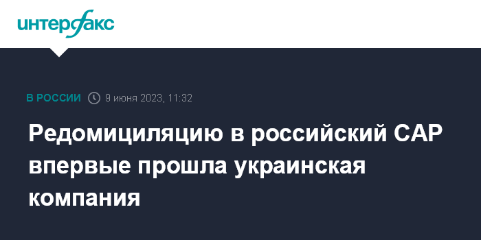 Москва. 9 июня. INTERFAX.RU - Процедуру редомициляции в специальный административный район РФ впервые прошла украинская компания.