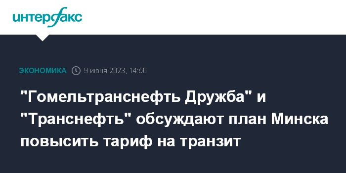 Москва. 9 июня. INTERFAX.RU - Трубопроводные компании России и Белоруссии обсуждают вопрос о намерении белорусской стороны повысить тариф на транзит российской нефти.