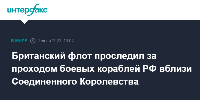 Москва. 9 июня. INTERFAX.RU - Британский эсминец Defender проследил за прохождением группы из трех российских боевых кораблей вблизи Соединенного Королевства, сообщил в пятницу Королевский военно-морской флот.