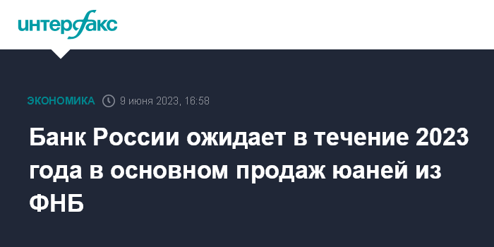 Банк России ожидает в течение 2023 года в основном продаж юаней из ФНБ