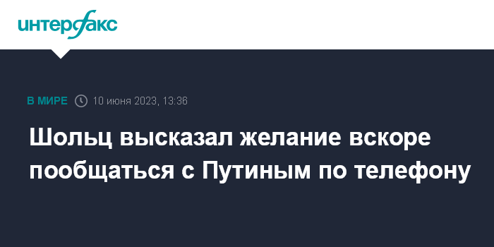 Москва. 10 июня. INTERFAX.RU - Канцлер Германии Олаф Шольц заявил, что в ближайшее время хотел бы провести телефонный разговор с президентом России Владимиром Путиным.