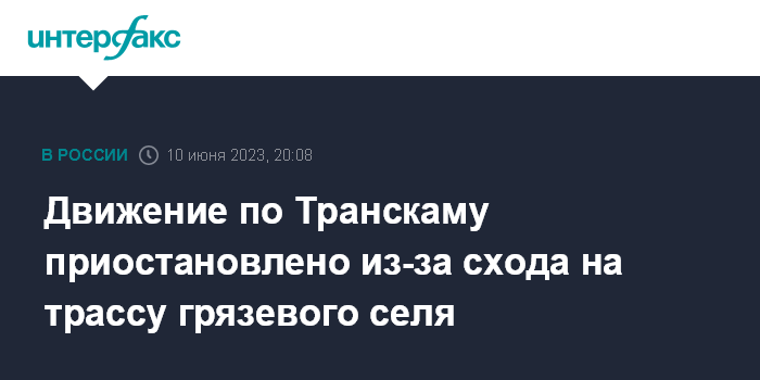Движение по Транскаму приостановлено из-за схода на трассу грязевого селя
