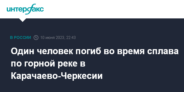 Москва. 10 июня. INTERFAX.RU - Один человек погиб и еще один госпитализирован после опрокидывания рафта во время сплава по горной реке в поселке Архыз Зеленчукского района Карачаево-Черкесии, сообщает ГУ МЧС России по КЧР в субботу.