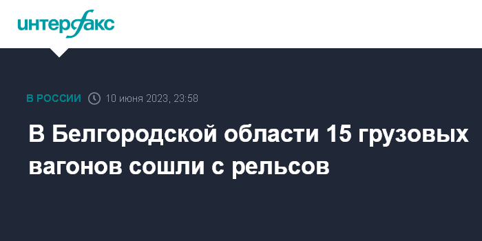 Москва. 10 июня. INTERFAX.RU - В Алексеевском городском округе Белгородской области 15 грузовых вагонов сошли с рельсов, никто не пострадал, сообщил глава региона Вячеслав Гладков.