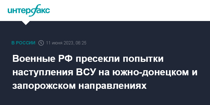 Военные РФ пресекли попытки наступления ВСУ на южно-донецком и запорожском направлениях