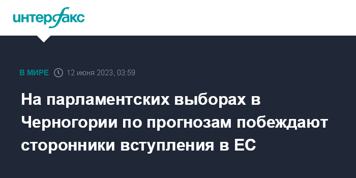 Москва. 12 июня. INTERFAX.RU - На прошедших в Черногории досрочных парламентских выборах, по предварительным данным, побеждает движение "Европа сейчас!", ориентирующееся на вступление страны в Евросоюз, сообщает агентство Associated Press (АР).