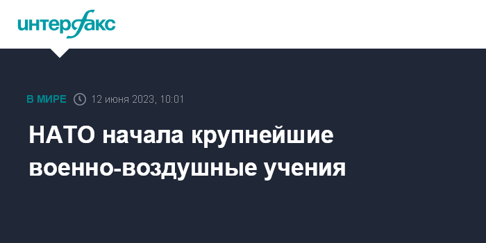 Москва. 12 июня. INTERFAX.RU - НАТО начала в понедельник самые значительные в своей истории военно-воздушные учения Air Defender 23, сообщают европейские СМИ.