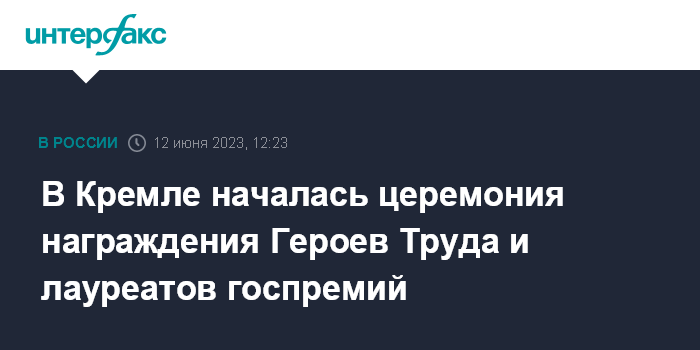 В Кремле началась церемония награждения Героев Труда и лауреатов госпремий