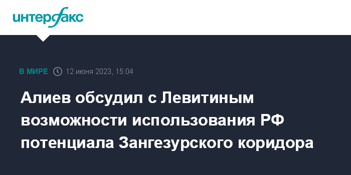 Алиев обсудил с Левитиным возможности использования РФ потенциала Зангезурского коридора