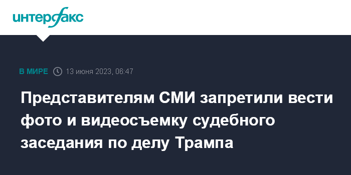 Москва. 13 июня. INTERFAX.RU - Представителям СМИ будет запрещено проносить мобильные телефоны и другие электронные устройства в здание суда, где 13 июня экс-президенту США Дональду Трампу должно быть предъявлено обвинение, сообщает телеканал NBC News.