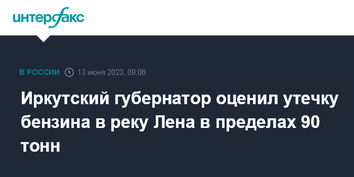 Иркутский губернатор оценил утечку бензина в реку Лена в пределах 90 тонн