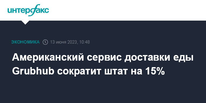 Москва. 13 июня. INTERFAX.RU - Американский сервис доставки еды Grubhub Inc. планирует уволить примерно 15% сотрудников для снижения расходов и поддержания конкурентоспособности, сообщает The Wall Street Journal.