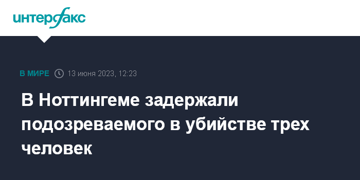 Москва. 13 июня. INTERFAX.RU - В Ноттингеме 31-летний мужчина задержан по подозрению в убийстве трех человек, сообщает Sky News.