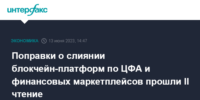 Поправки о слиянии блокчейн-платформ по ЦФА и финансовых маркетплейсов прошли II чтение