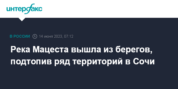 Москва. 14 июня. INTERFAX.RU - В Хостинском районе Сочи река Мацеста вышла из берегов из-за ливней, сообщает пресс-служба ГУ МЧС России по Краснодарскому краю в среду.