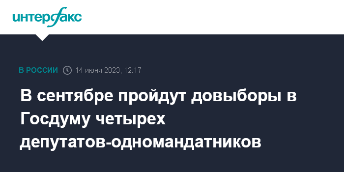 В сентябре пройдут довыборы в Госдуму четырех депутатов-одномандатников
