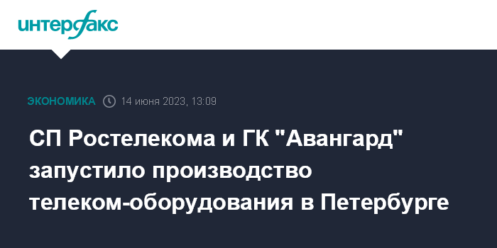 СП Ростелекома и ГК "Авангард" запустило производство телеком-оборудования в Петербурге