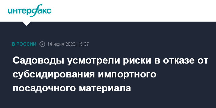 Москва. 14 июня. INTERFAX.RU - Садоводы РФ считают правильной инициативу Минсельхоза по отказу от субсидирования закладки интенсивных садов зарубежными саженцами. Однако они обеспокоены тем, что предложенная мера не позволит им завершить уже реализуемые проекты с такими саженцами и приведет к существенному росту затрат.