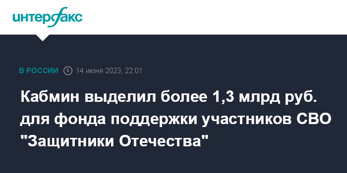 Кабмин выделил более 1,3 млрд руб. для фонда поддержки участников СВО "Защитники Отечества"